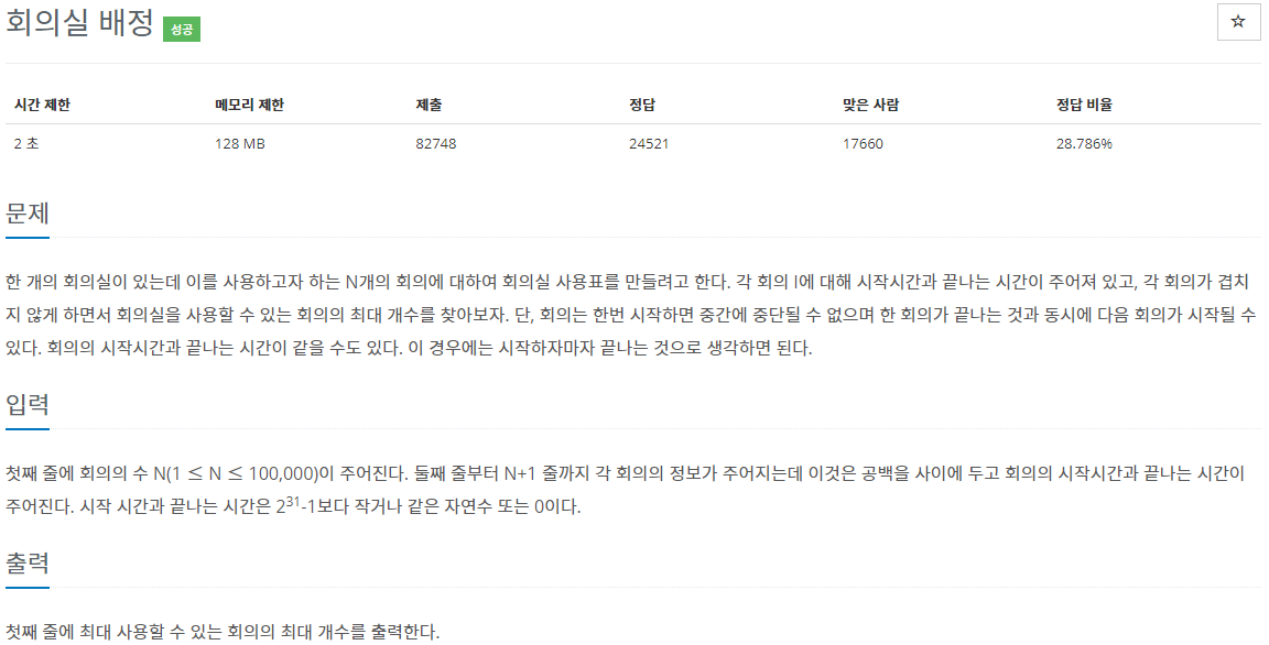문제 링크 : https://www.acmicpc.net/problem/1931